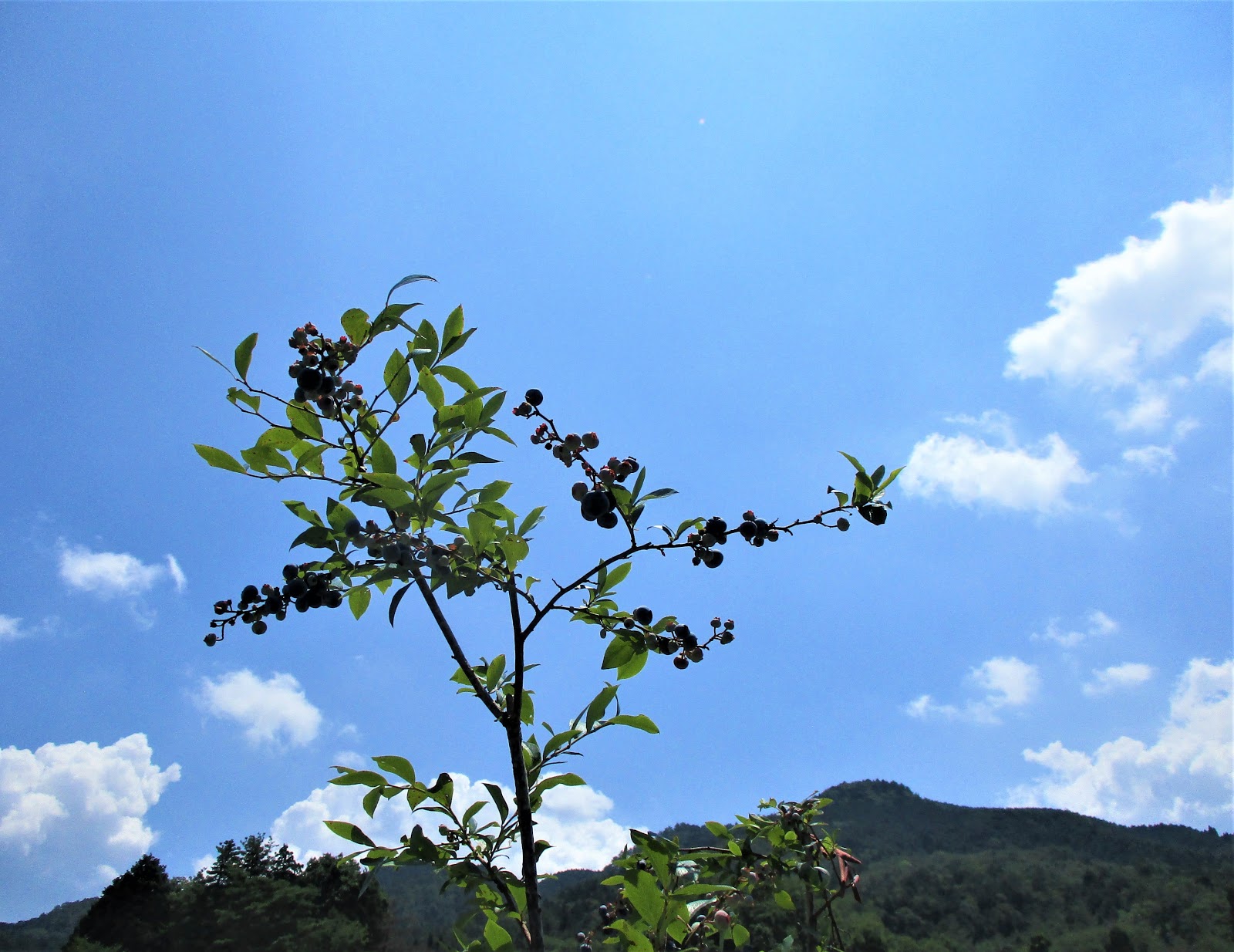 手入れの行き届いた山肌に広がるブルーベリー農園は、オーナーさんの思い入れがあちこちに豊かな自然に包まれ広がっていました。